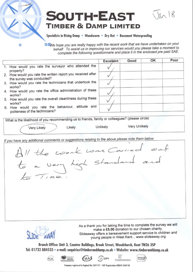 “The whole crew were excellent and informative. I would definitely recommend South East Timber & Damp.”